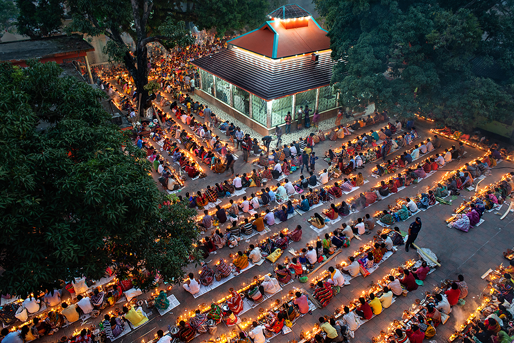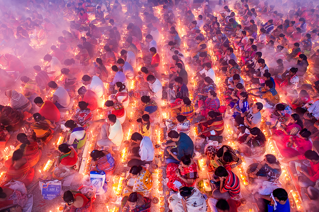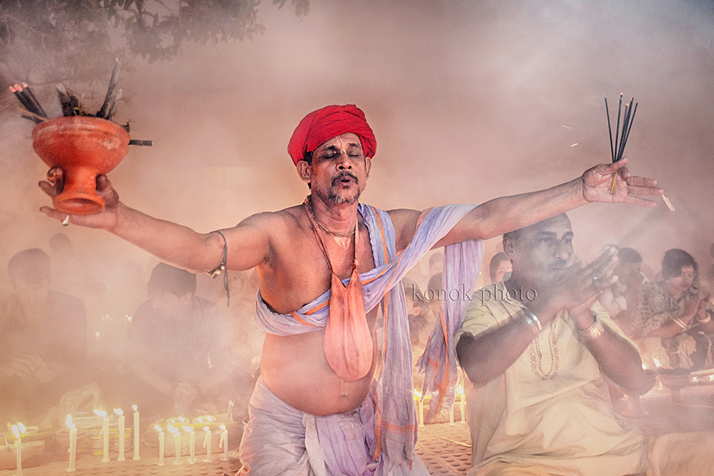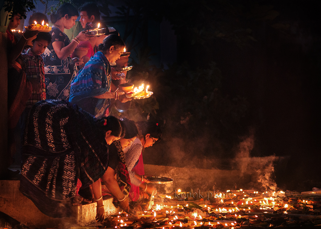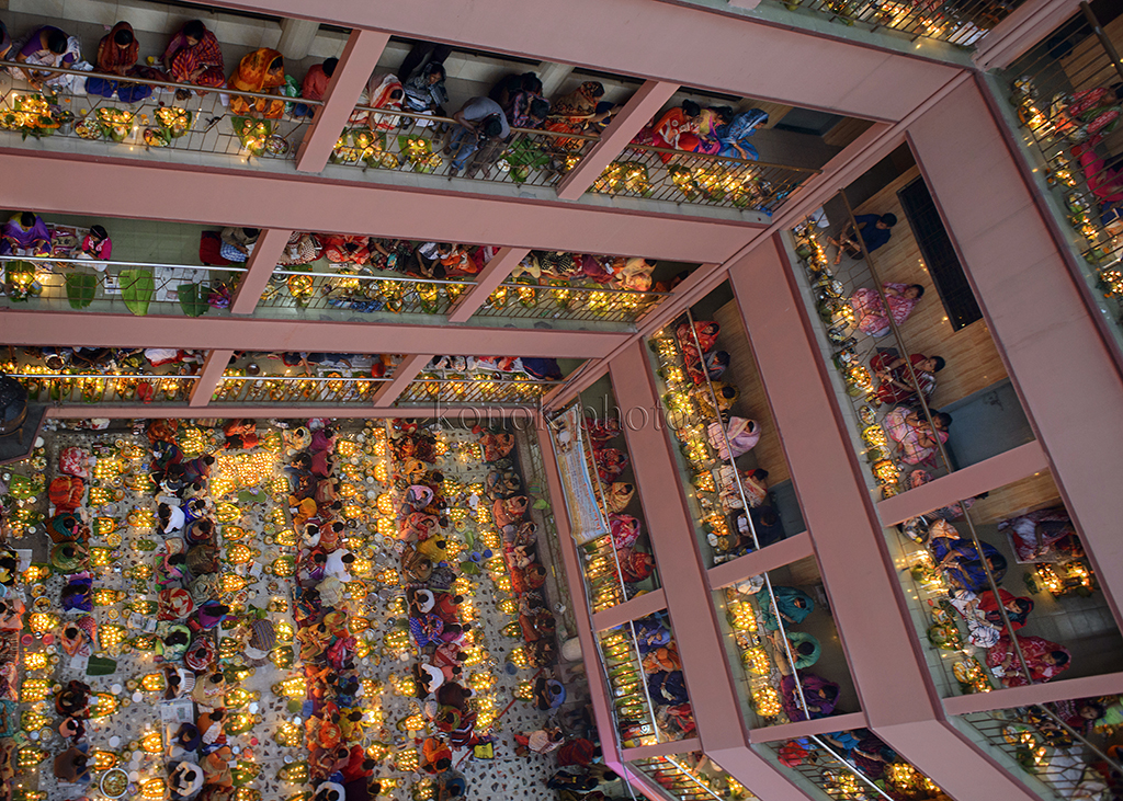 Every year, thousands of Hindu devotees, mainly the followers of “Loknath,” gather at different branches of Shri Shri Lokenath Brahmachari Ashram for the “Kartik Brati” or “Rakher Upobash” religious festival. The festival is held on every Saturday and Tuesday during the last 15 days of Bangla month of “Kartik.” Lokenath Brahmachari, mostly known as Baba Lokenath, was an 18th Century Hindu saint and philosopher in Bengal. Lighting small lamps and special incense, Hindu worshipers fast and pray in earnest to the gods for favours during the traditional ritual called Rakher Upobash.