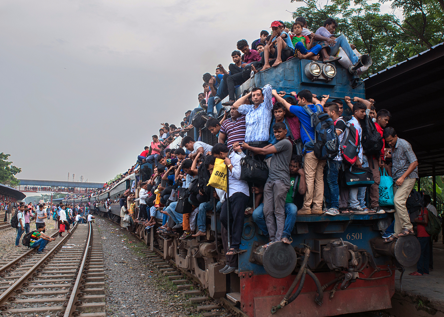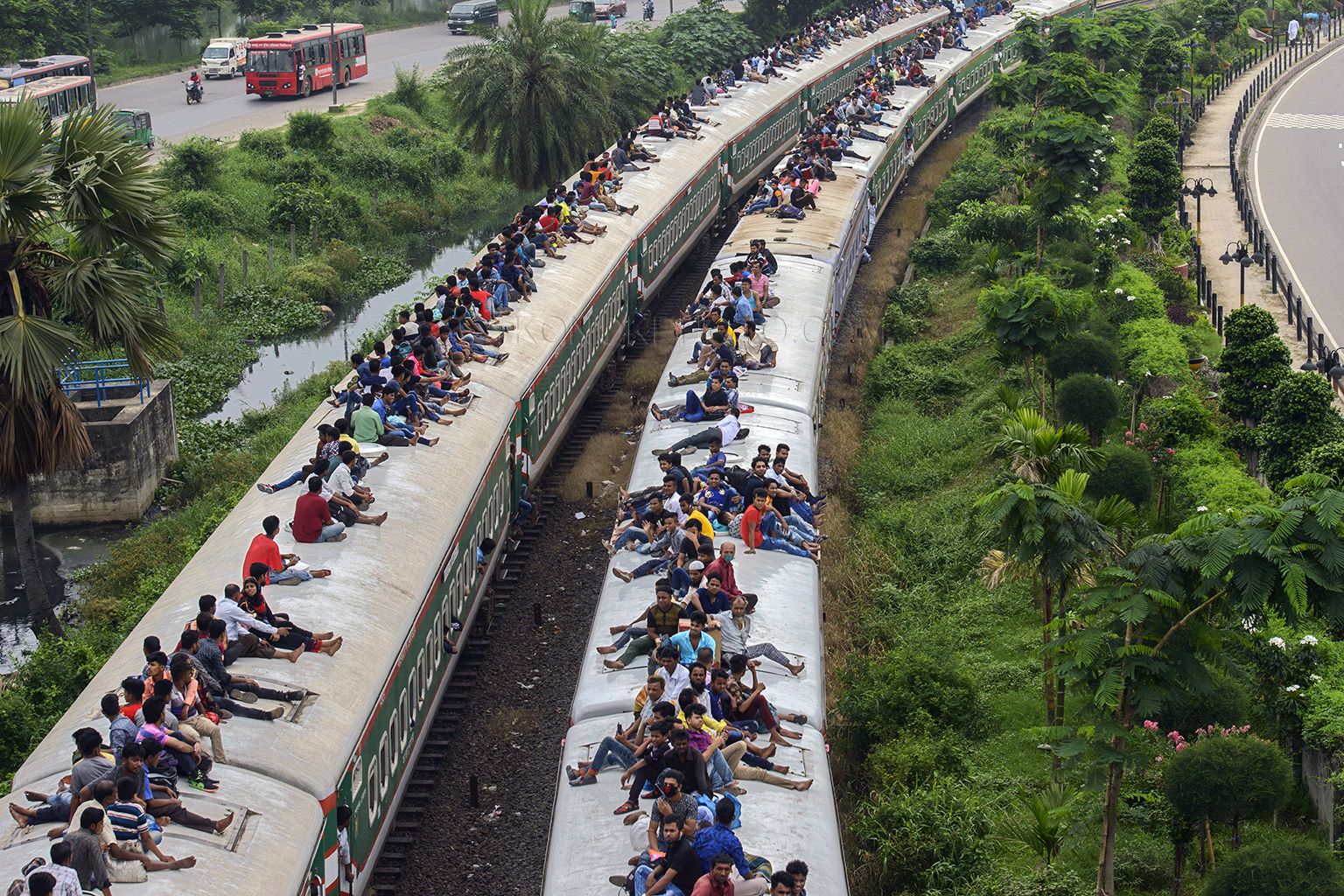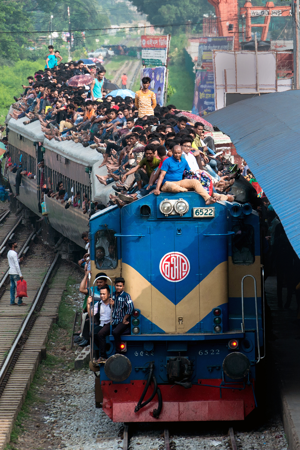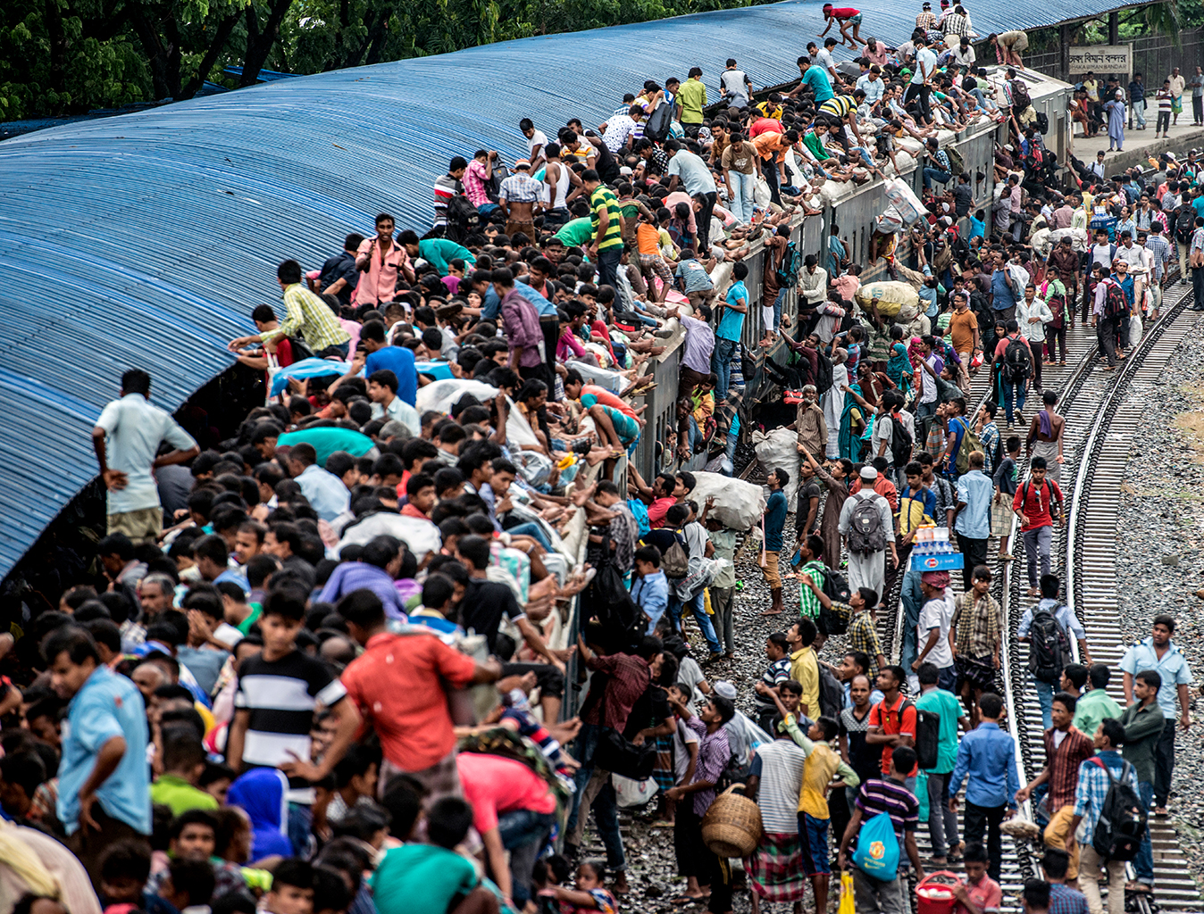 Dhaka is an overpopulated city on earth. The city has lack of enough transport facility for its dwellers. Besides this traffic jam is a common phenomenon here. Thus train becomes popular among passengers forget getting a decent seat, here you’re lucky if you can squash yourself onto the roof. These staggering images capture the crushing daily grind for commuters in Bangladesh, which sees thousands of workers clambering over one another to board a train out of Dhaka city. Men, women and children are yanked up onto the 12-ft-high roof of the train as they struggle to find themselves space on the often-dangerous journey home after work.