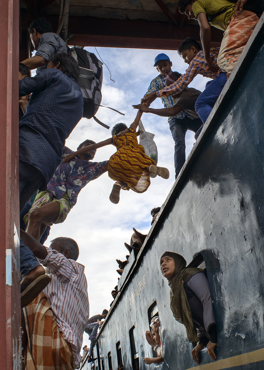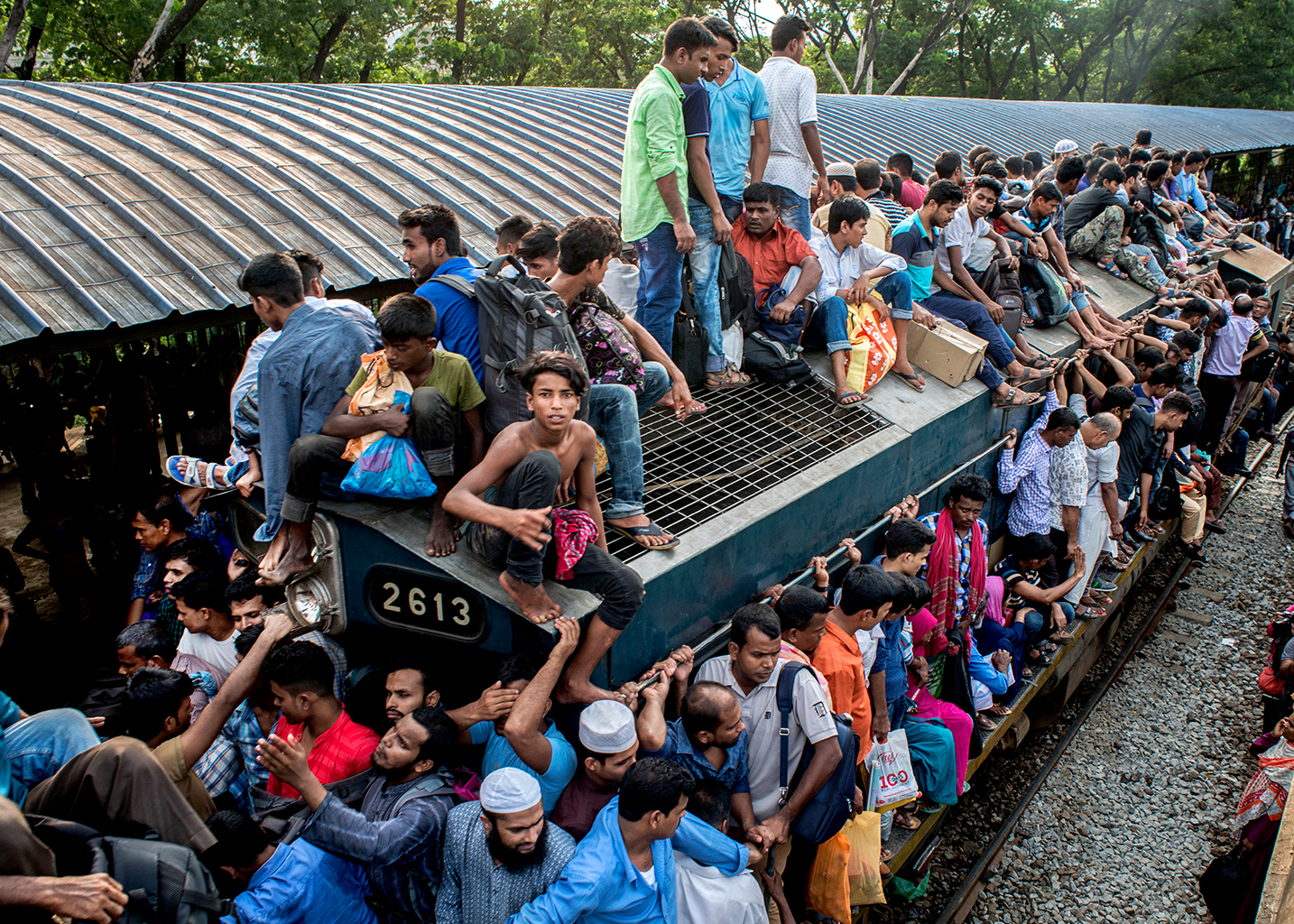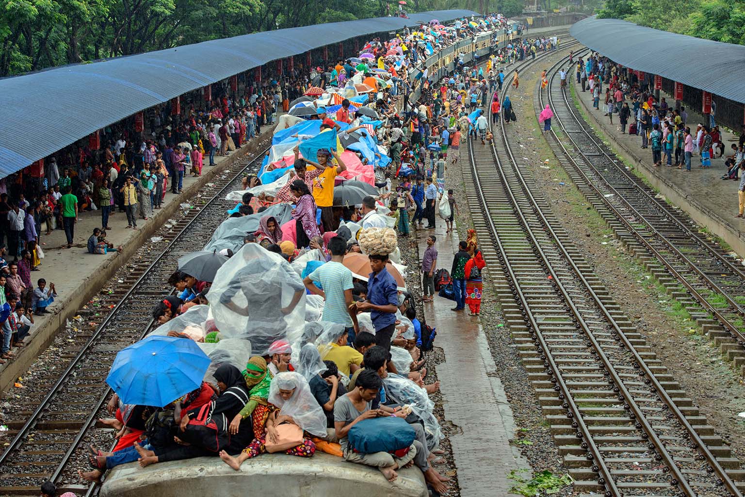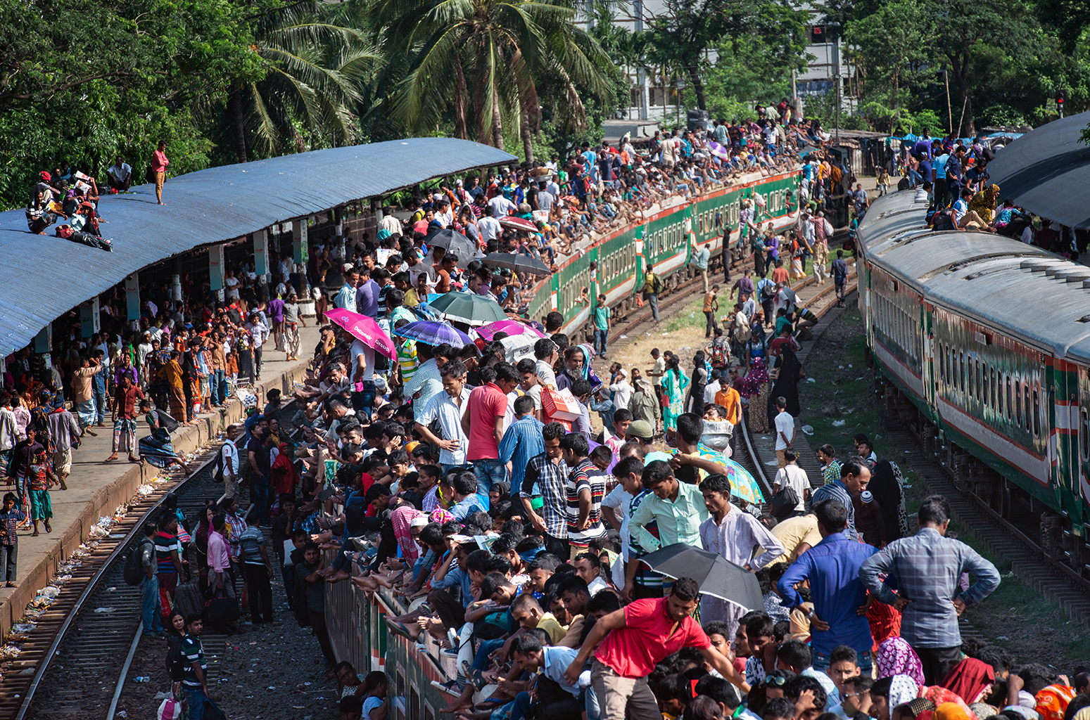 Dhaka is an overpopulated city on earth. The city has lack of enough transport facility for its dwellers. Besides this traffic jam is a common phenomenon here. Thus train becomes popular among passengers forget getting a decent seat, here you’re lucky if you can squash yourself onto the roof. These staggering images capture the crushing daily grind for commuters in Bangladesh, which sees thousands of workers clambering over one another to board a train out of Dhaka city. Men, women and children are yanked up onto the 12-ft-high roof of the train as they struggle to find themselves space on the often-dangerous journey home after work.